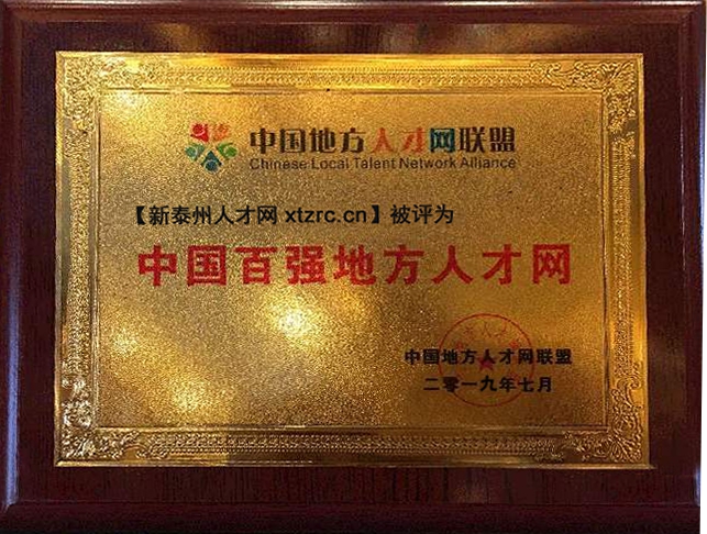 熱烈祝賀新泰州人才網(wǎng)榮獲中國百強(qiáng)地方人才網(wǎng)稱號